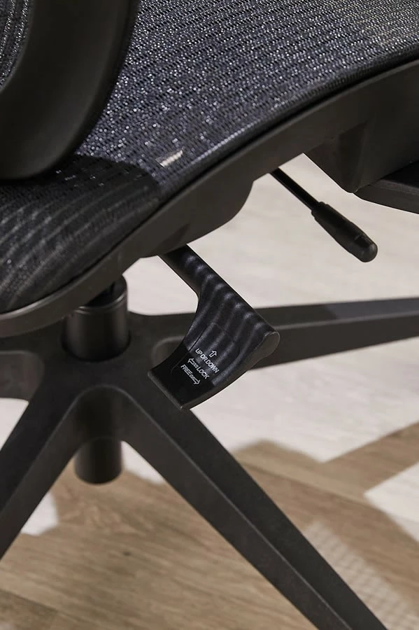 The seat is mounted onto a synchronized mechanism for simultaneous adjustment of the seat and backrest. The seat has a seat slide to increase the seat depth to suit both longer and shorter-legged users.Â