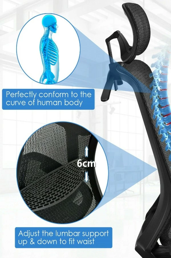 This office chair features an adjustable headrest, lumbar support, and armrests that provide optimal support and help reduce back fatigue.