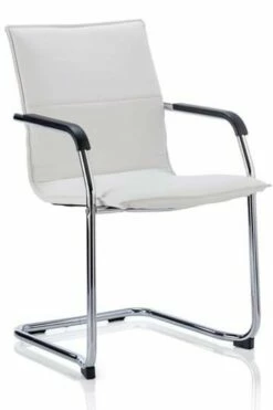 Leather faced, cushioned visitors chair with smart chrome cantilever frame. Available in a choice of three colours Red, Black and White.