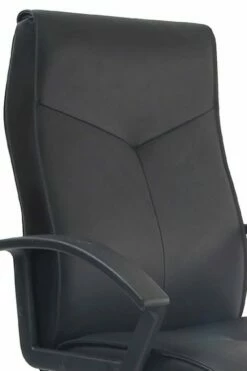The Dakota over-sized high back executive faux leather chair in black features a luxury padded seat and backrest and deeply padded lumbar cushion.