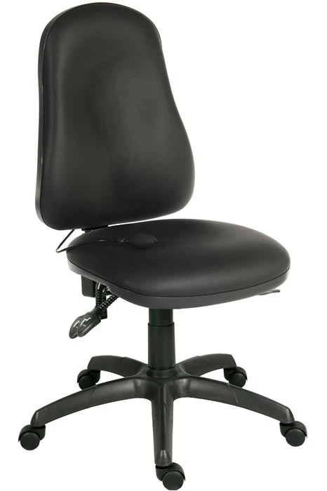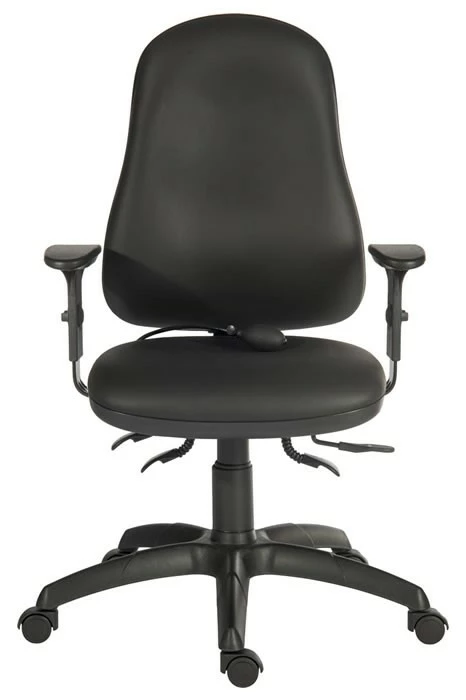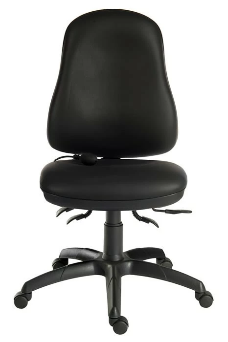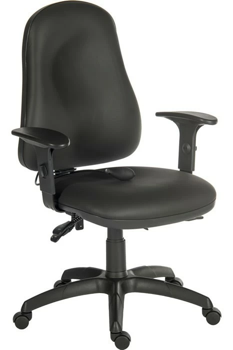 The Ergonomic Comfort Executive office chair with the additional option of arms, available in black PU. The operator chair has a tilt mechanism lockable in a upright position. Features include: