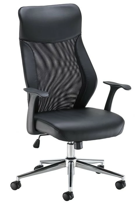 The Ergonomis is an excellent high backed mesh office chair with chrome supporting bars giving strength to the high backrest. This is fitted with a fixed leather headrest that can be easily cleaned. The deeply padded leather seat offers superb comfort. With fixed armrests finish this excellent ergonomic office chair.
