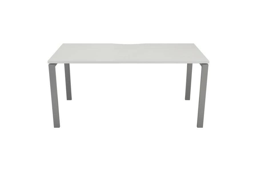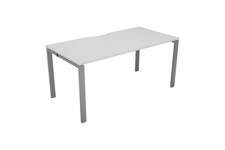 The Kestral Bench Desk Range has a stylish laser cut profile end frame made from a continuous 3 mm steel tube for extra strength and fitted with adjustable feet. The frame is available in either a silver or white finish.
