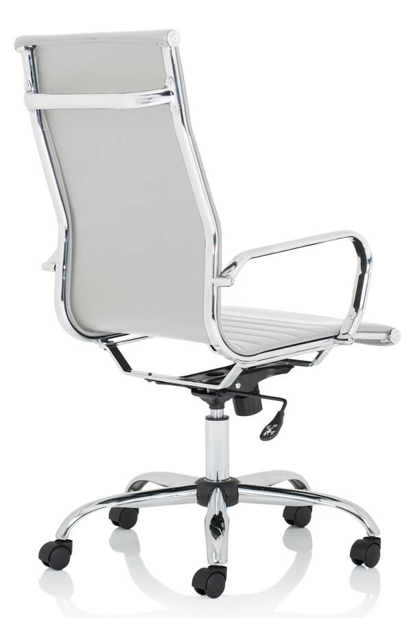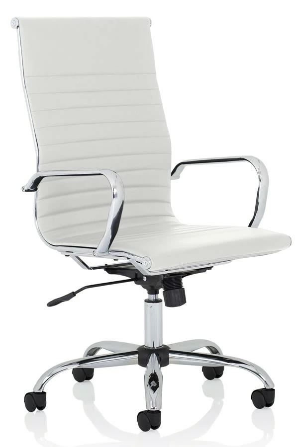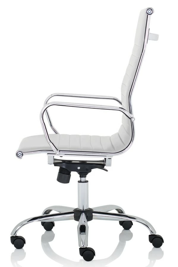 The classically designed Italian inspired design blends a mirror finish chrome finish with quality soft bonded leather in a crisp modern white finish, this classically styled chair is a truly eye catching piece of office furniture.