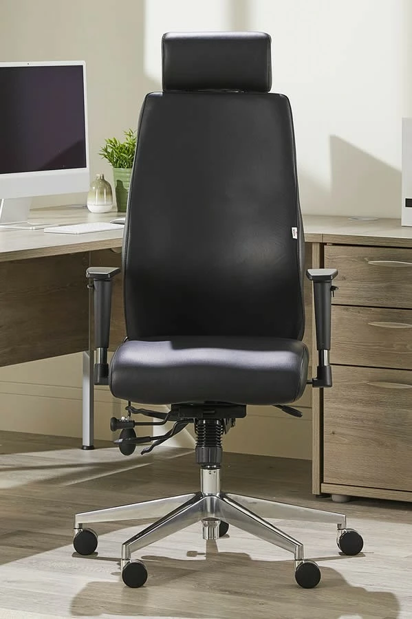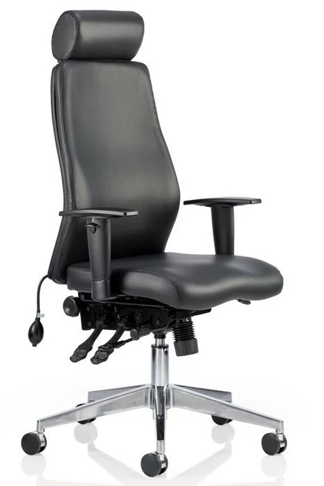 The Onyx Leather Ergonomic Chair has been approved by a UK Chiropractic doctor and provides excellent posture support. Supports up to 27 stone/171 kg. Suitable for 24-hour call centre usage.Â