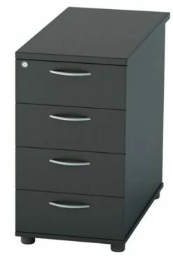 The Optima Black Slimline 3-drawer steel mobile pedestal is a lockable under-desk pedestal that will fit under any of the Optima desks. Features two box drawers and one filing drawer.