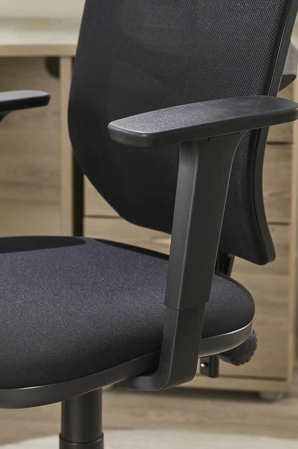 The deeply cushioned contoured seat is available in a large range of coloured fabric seat options and benefits from a heavy-duty gas strut which is weight tested gas strut to 26 stones.