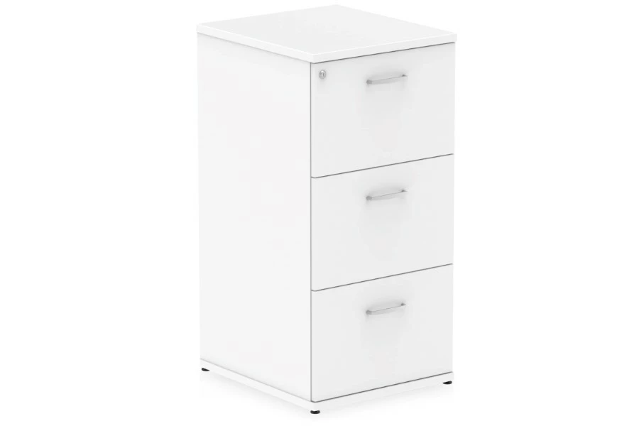 Keep your files organized and secure with this Polar White 3-drawer filing cabinet in a white finish. This cabinet has three spacious drawers that can fit both foolscap and A4 files. You can lock the drawers with a key and keep your documents safe and confidential.