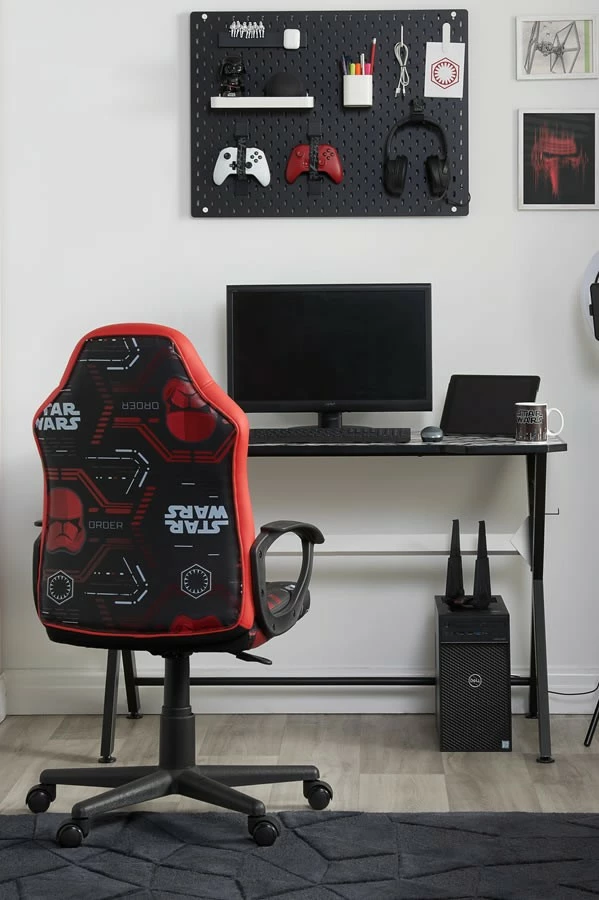 This Star Wars-themed gaming chair is covered in faux leather and features the imperial crest as well as a Sith trooper pattern making it a fine addition to your bedroom or office.