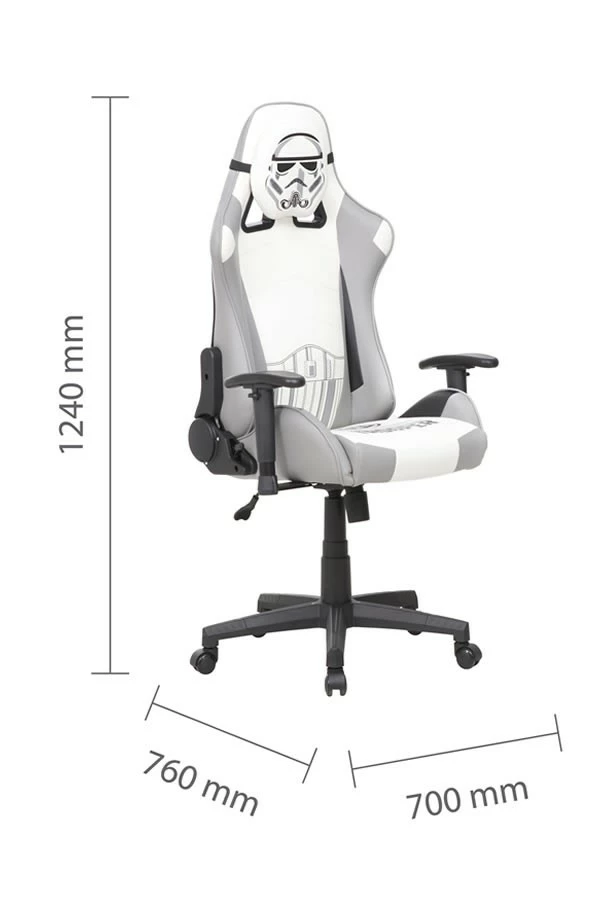 Featuring a stormtrooper head as a headrest, and a fully adjustable, swivel and lock mechanism seat which offers enhanced support and stability during those longer, hard-core gaming sessions.