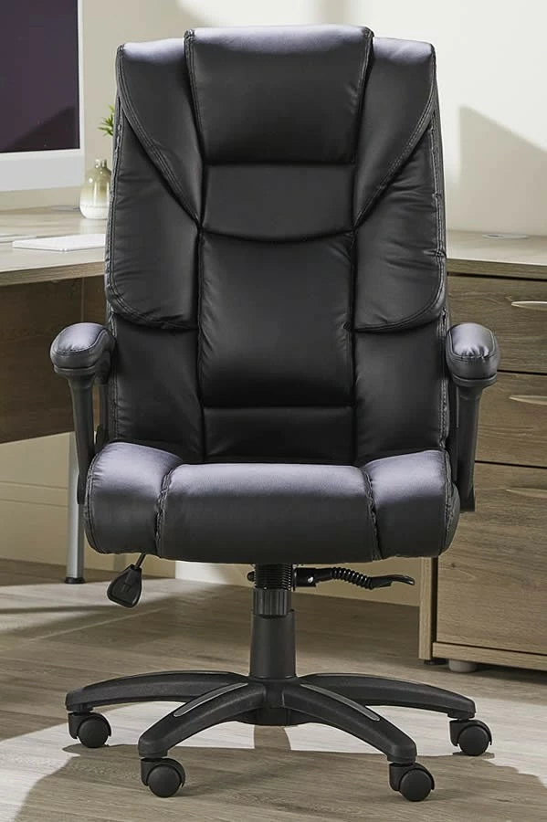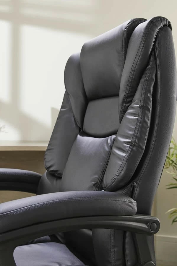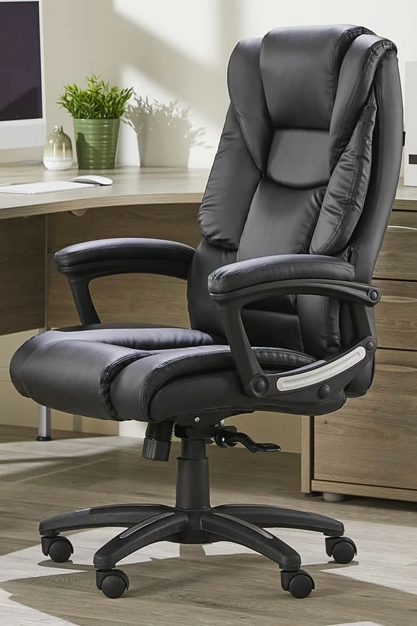 The Washington high-back executive chair in black offers a sumptuous deeply padded seat and backrest. Built with a larger user in mind, the chair is well proportioned to suit all body types.